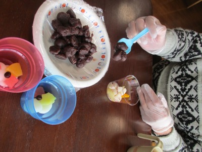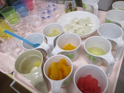 手作りおやつの時間には、あんみつを召し上がっていただき、