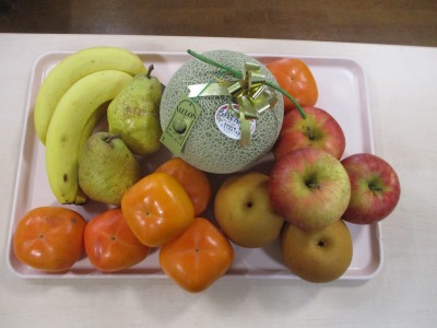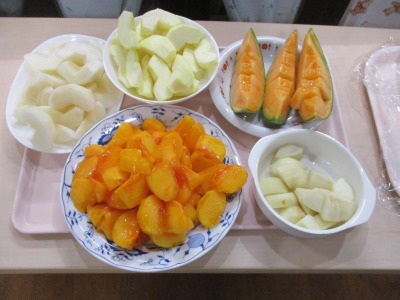 メロン、バナナ、ナシ、リンゴ、カキ、ラ・フランス――季節の味覚を好きなだけ選んで召し上がっていただきました。