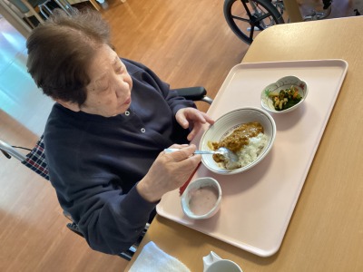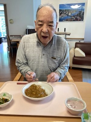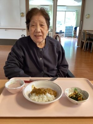 さて、そんな中、ゆりユニットでは“手作りカレーライス”を作り、ご利用者様に召し上がっていただきました。