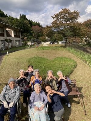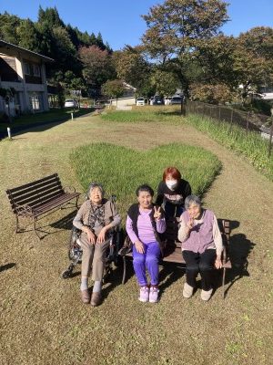 🌸 苑庭に大きなハートが出現!~日向ぼっこで心もぽかぽか~