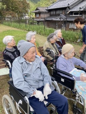 天気の良い日には、順番で苑庭に出て日向ぼっこ☀️「気持ちいいね〜」と笑顔があふれ、会話も自然と弾んでいました。