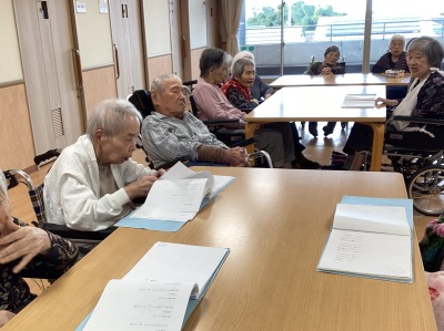 驚くのは、皆さまが歌詞をしっかり覚えておられること。元気いっぱいに笑顔で歌う姿は、年齢を超えて本当に素敵です。