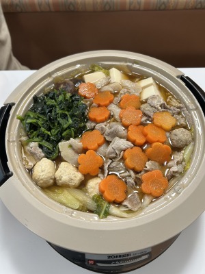 お肉をはじめ、人参・ほうれん草・白菜など、彩り豊かで栄養満点の具材がたっぷり入ったお鍋を、皆さま美味しそうに召し上がっておられました。