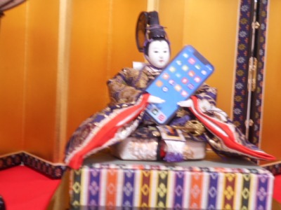 お内裏様には“今風”にスマートフォンを持っていただきました(笑)