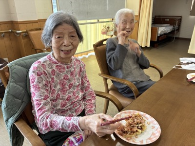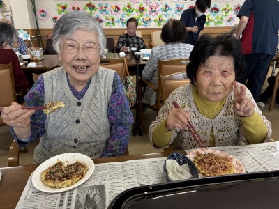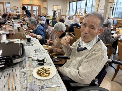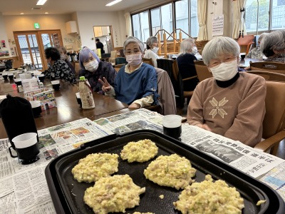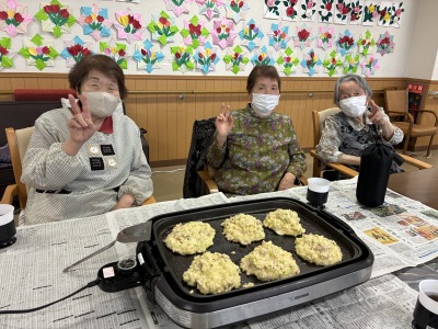 今月のイベントでは、おやつの時間に「お好み焼き」を提供しました。