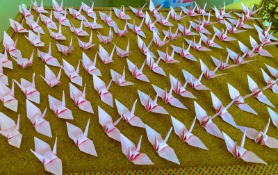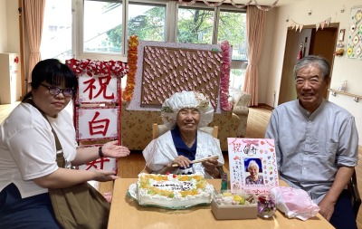 これからも素敵な笑顔でお過ごしいただき、来年には大きな鶴を1つ付け加えて100羽の鶴でお祝いすること、職員一同楽しみにしています。