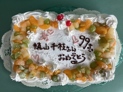 職員がこつこつと折った99羽の鶴と、管理栄養士が匠の技で作ったお祝いのケーキをプレゼント🎂
