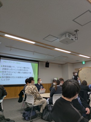 前半では、「在宅でのリハビリ職の関わりについて」「市で実施している短期集中予防サービスについて」の発表が行われました。