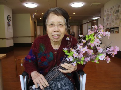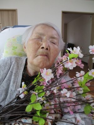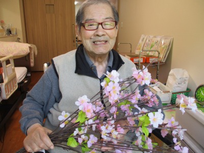 湯上がりには、桜の飾りの前で記念撮影を行ったり、春らしい雰囲気の中でおやつを楽しんでいただいたりと、穏やかなひとときを過ごしていただきました。